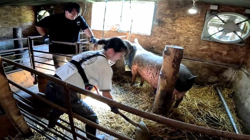 私の体重の5倍はあるお母さんブタにおっかなびっくりに声をかけながら足元のそうじを進めていきます。