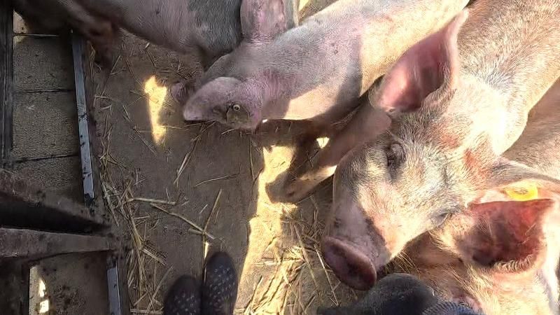 800頭のブタたちが毎日3~5キロのエサを食べるこの牧場。