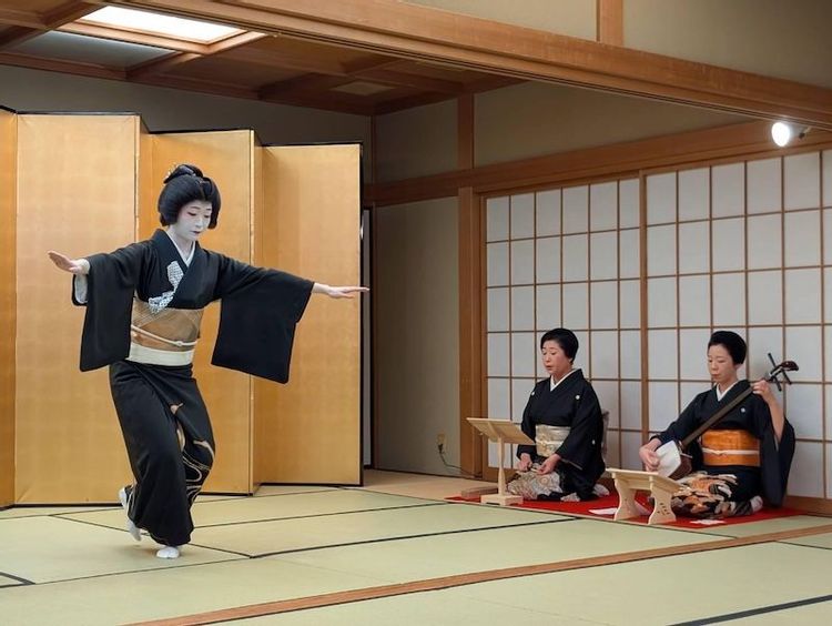 私のように、踊り専門の立方(たちかた)と、唄や三味線などの演奏を専門とする地方(じかた)です。