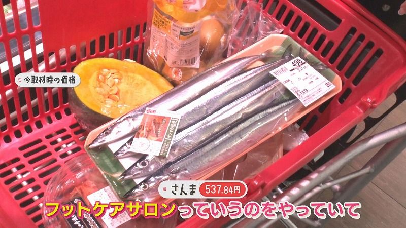 番組スタッフ:「どんなお買い物をしてるか見せていただけないかなと思って…」あつこさん:「大したもの買ってない…子どもが食べるのにキウイと、柿が出たなと思って柿と、あとカボチャは、カボチャ団子にしようかなと思って」