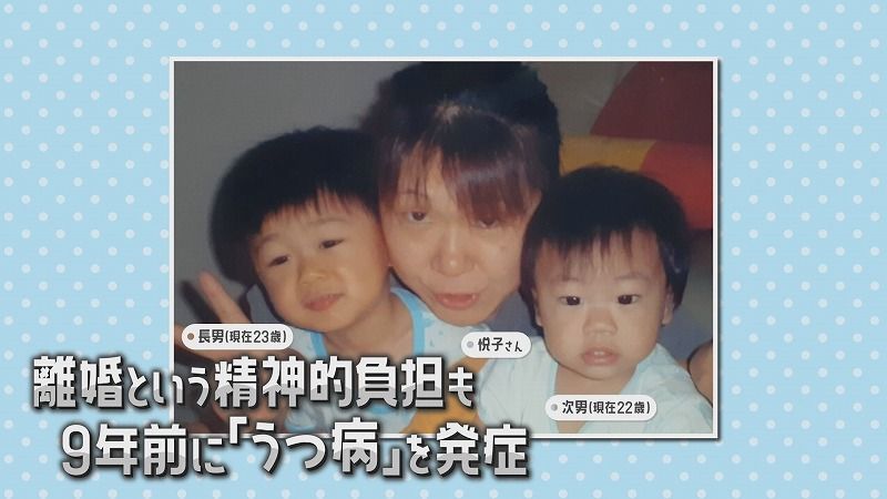 さらに離婚という大きな心の負担も重なり、9年前、悦子さんはうつ病を発症します。