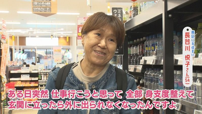 悦子さん:「ある日突然、仕事行こうと思って全部身支度整えて、玄関に立ったら外に出られなくなっちゃったんですよ。子どもたちに助けてもらって、少しずつ買い物に行けるようになってというのがあって、現在ですね」