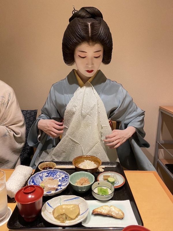 白塗りに日本髪かつら。いわゆる“芸妓”のいでたちで、私たちは普段どのように食事をしているのでしょうか?