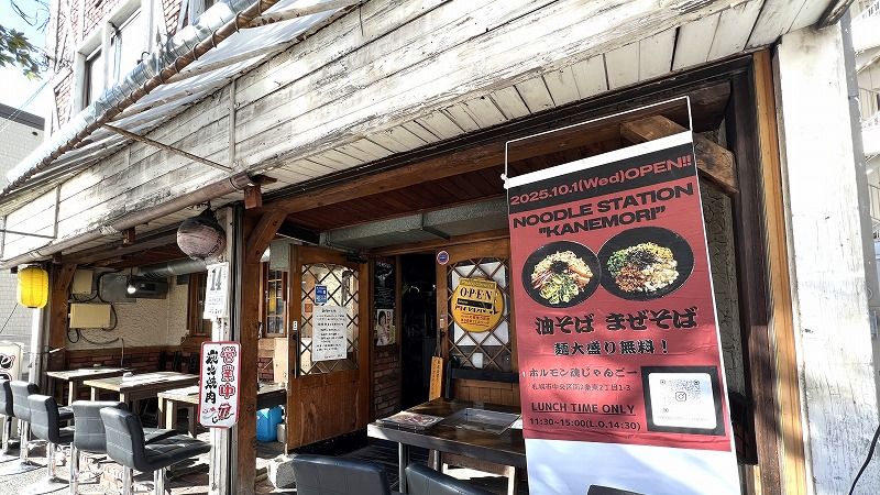 今回ご紹介するのは、札幌中心部、二条市場のお向かいにある焼肉店「ホルモン魂じゃんごー」で、ランチタイムだけ間借り営業しているラーメン店 「NOODLE STATION “KANEMORI”」。