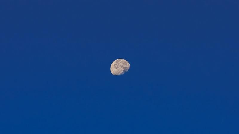 東の空には太陽が昇って、西の空には夜の名残の月。