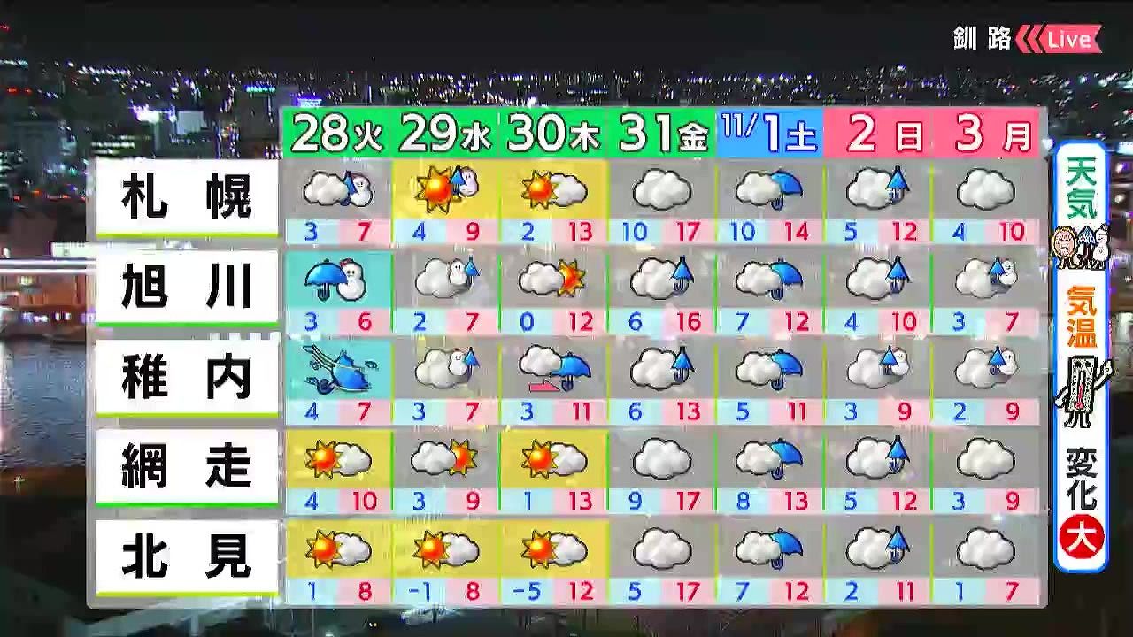 あす28日(火)の札幌です!朝昼晩の天気をもんすけでお伝えします!