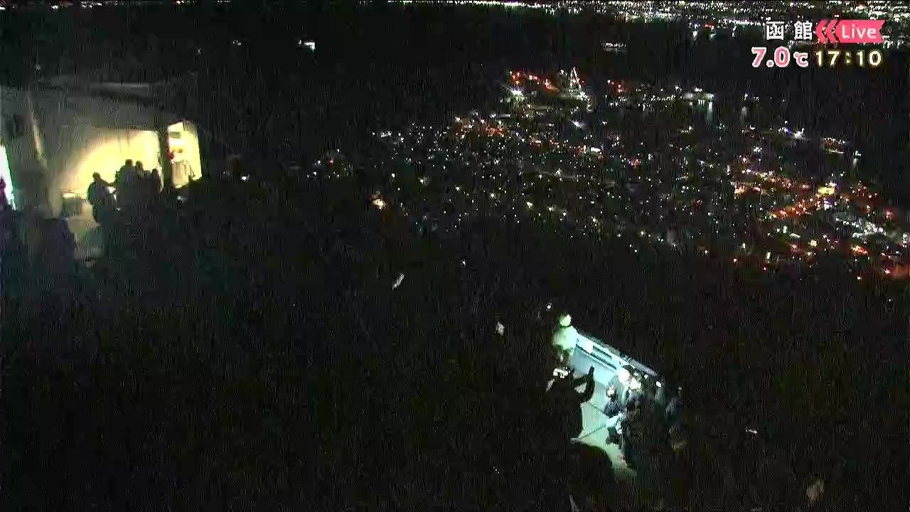 函館です。真っ暗ですが観光客がたくさんいます。