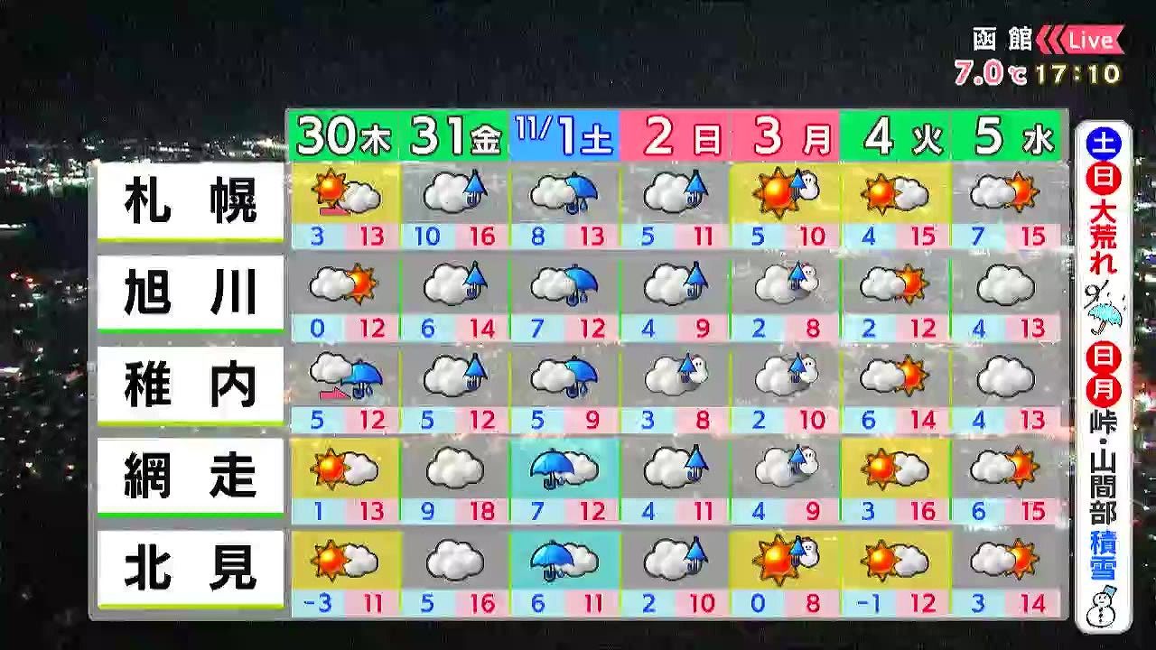 あす30日(木)の札幌です!朝昼晩の天気をもんすけでお伝えします!
