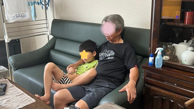 こうちゃんは賑やかな夜にテンションが上がり、「みんな起きてるから起きてる!まだ寝ない!」と言っていましたが、気づくとソファで寝てしまっていました。