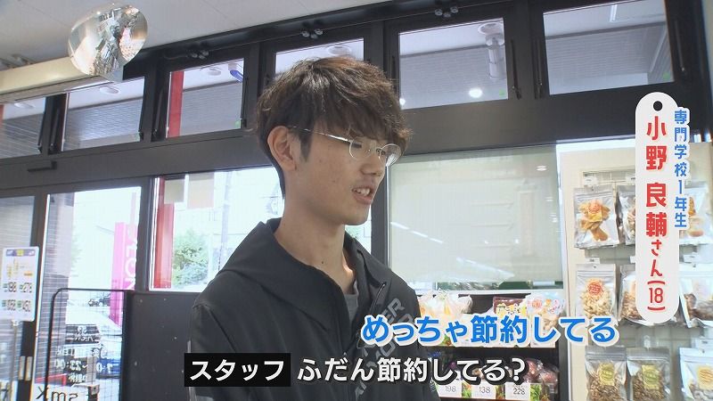 小野さん:「めっちゃ節約して、ただ、学校の授業の関係でバイトとかが入れにくいんですよ。僕の受けている専攻がイベント運営とかそういうのをする専門なので、次の週丸々1週間イベントありますとか…」