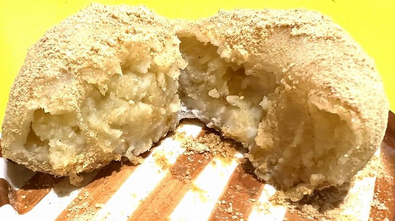 中を割ってみると、包む生地はうすめで、じゃがいものマッシュポテトがたっぷり!