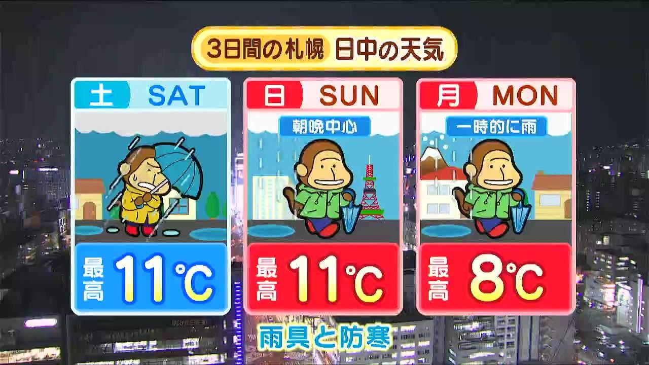 3日間の札幌です! 土日月の天気をもんすけでお伝えします!