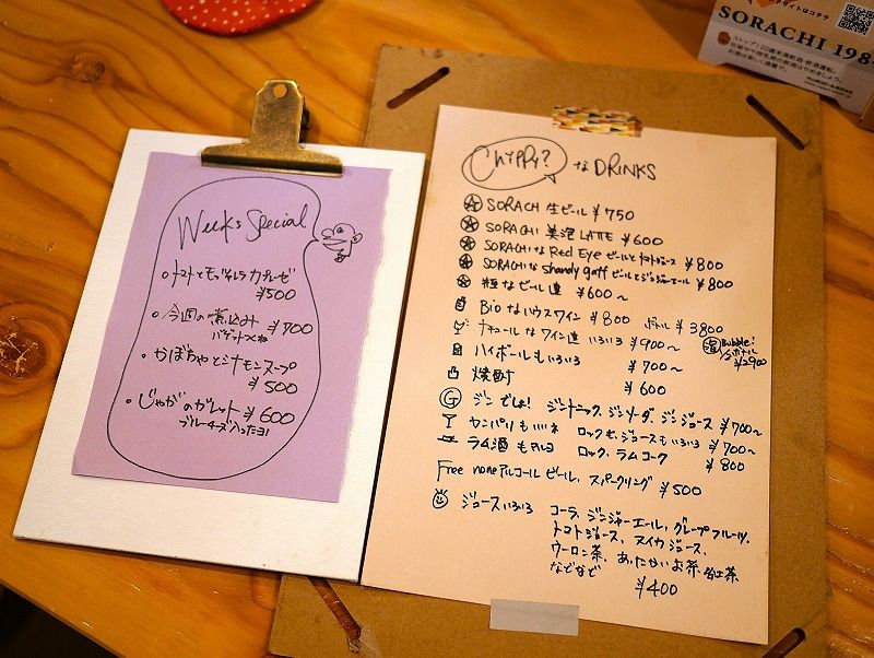 こちらはドリンクメニューと今日のオススメ。オサナイが思っていた以上に、いろんなメニューがあってビックリ!