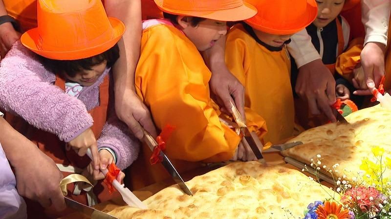 ケーキ入刀ならぬ、フォカッチャへの入刀。