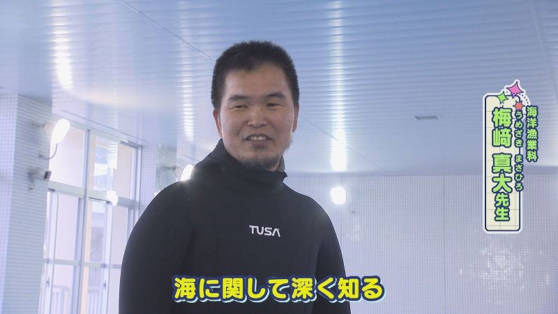 先生:「潜水士になってマリンスポーツや公安土木に進む子が直接的なんですけど、それ以外の分野で活躍する子もいるので、海に関して深く知る実習授業になっています」