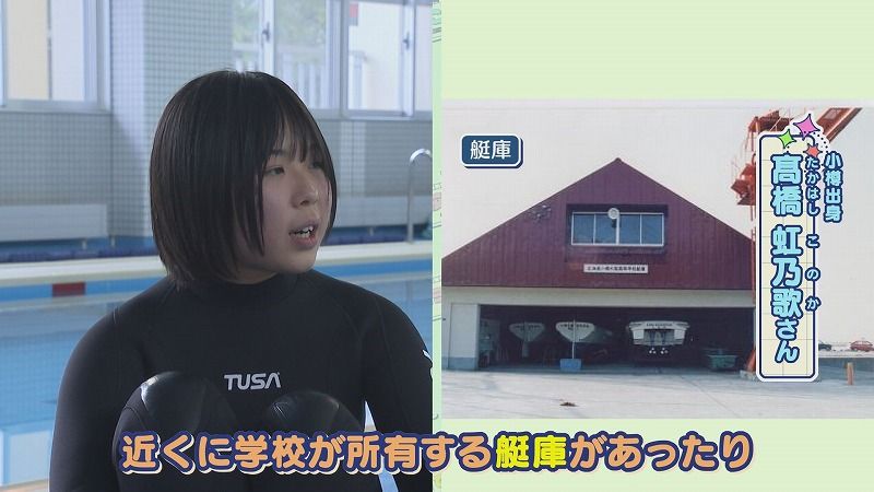 髙橋さん:「校外にも実習場がある!近くに水産高校が所有する艇庫があったり、小型船舶とか、カッター船が出航していく、収納されている小さめの倉庫がある。来年は小型船舶の免許も取るので!」