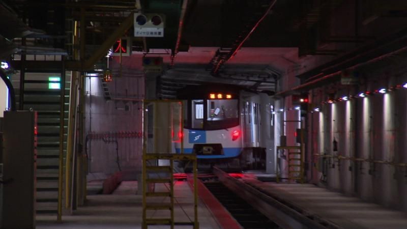 終着駅へ着いた地下鉄の車両は、ホーム奥にある留置線で一時停止。