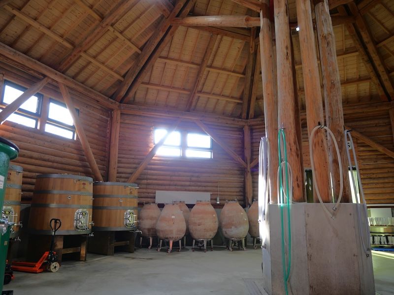 そして最も印象に残ったのが、醸造に使用するテラコッタ(壺)!イタリアで特注して造ってもらったそうで、よく見ると形にかなりバラつきがあります(笑)