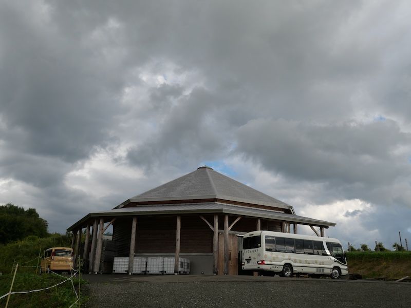 これがカムイ・メトッ・ヌプリが掲げている想い。ワイナリーにあるログハウスに使用しているカラマツの木は、自社農場の森林から新月伐採(※)したもの。月のリズムに合わせて森と共生する哲学が、自然と調和するという想いに繋がっています。ちなみにログハウスの屋根は八角形になっていて、循環する円をイメージしたそうです。さらにお隣りにある醸造所とつなげた形は、円環するメビウスの輪状を表現。なんという徹底ぶり!!