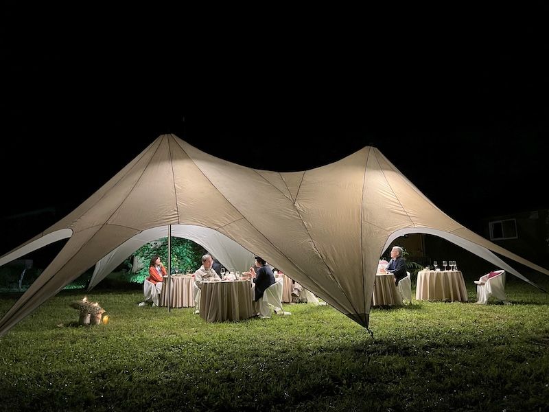 この日は多田農園さんの敷地内に一夜限りのレストランが出現!(さすが、大人の富良野旅!)