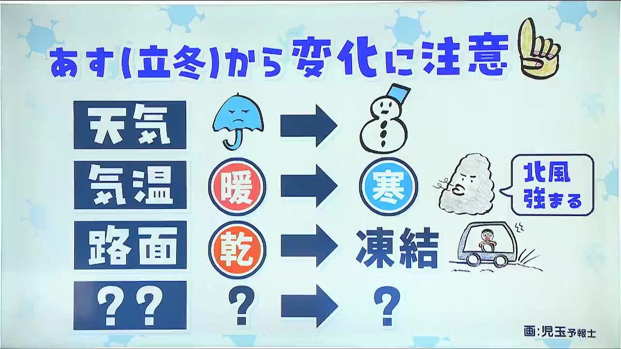 立冬で季節が冬に変わるだけでなく、降るものが雨から雪に変わり、一気に寒くなります。路面も凍結路面に変わりそうです。そして、他にも大きく変化するものがあります。