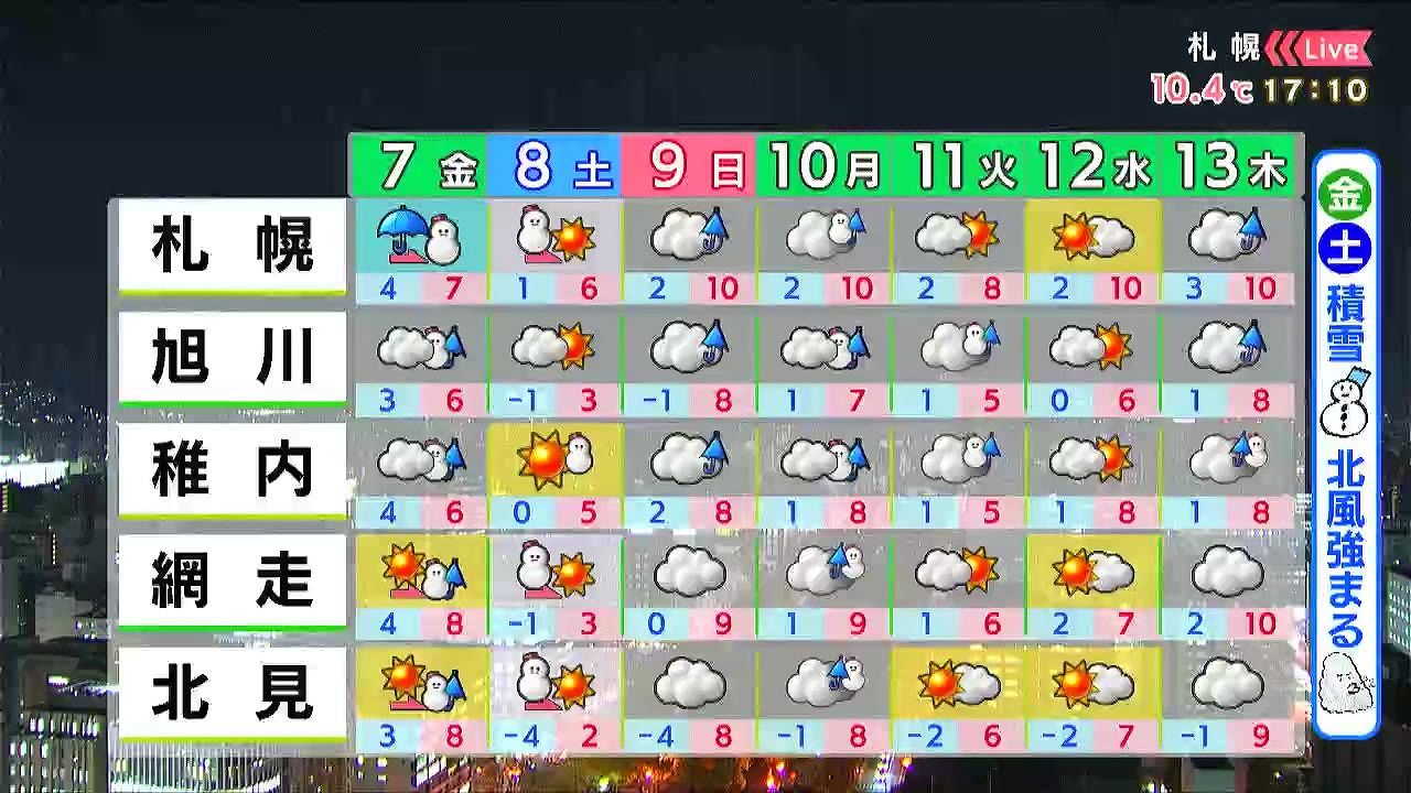 あす7日(金)の札幌です!朝昼晩の天気をもんすけでお伝えします!