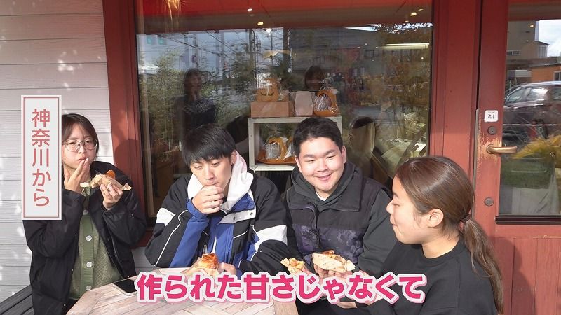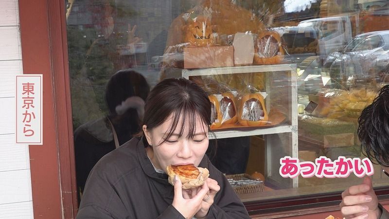 東京から:「あったかい…まだ温かいです。おいしー!パイが軽いのかな」