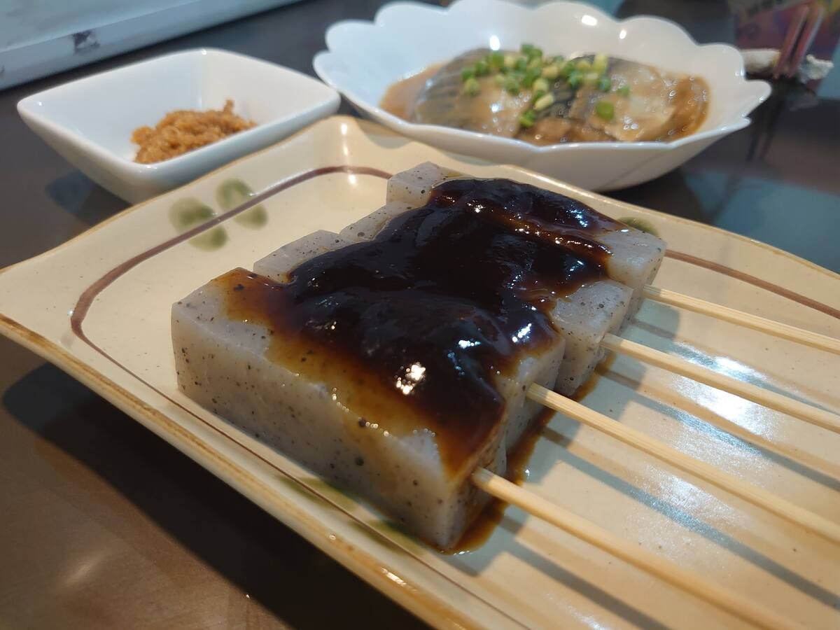 お通しと「赤ウインナー」(500円)と「山わさび」(400円)。