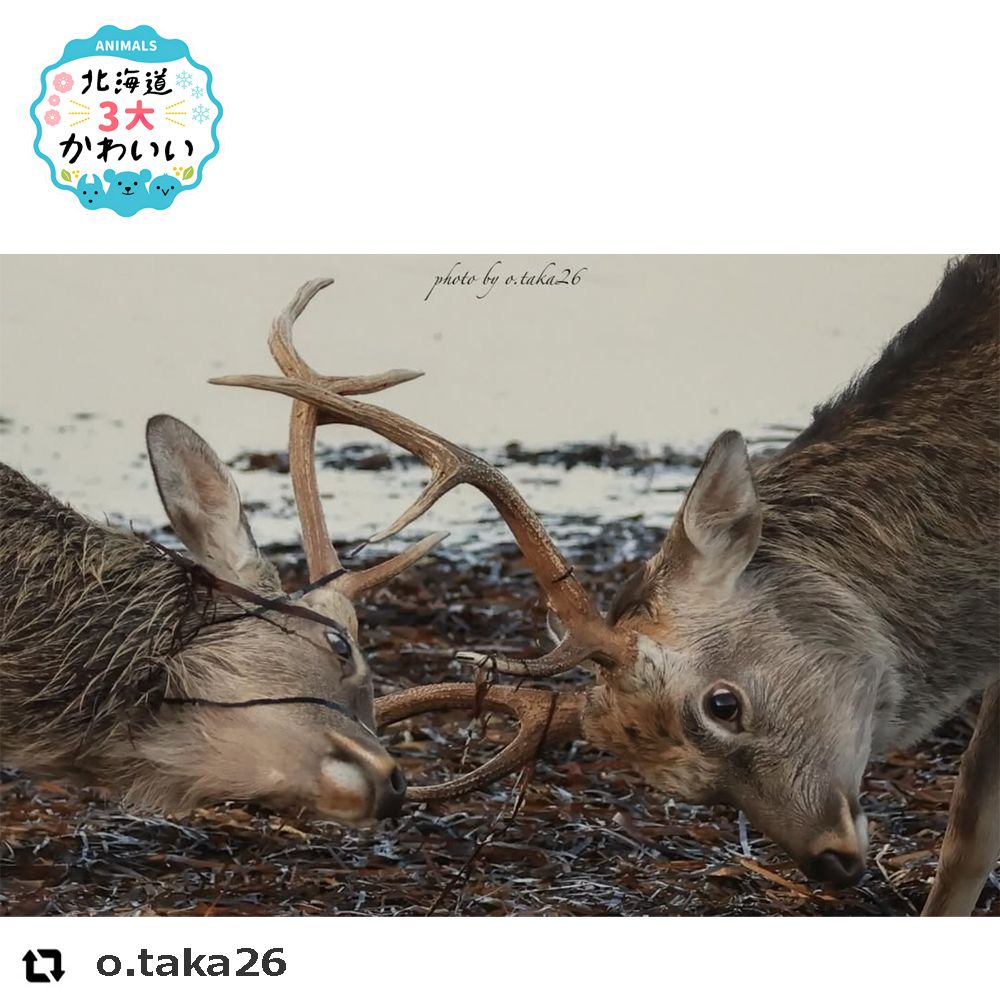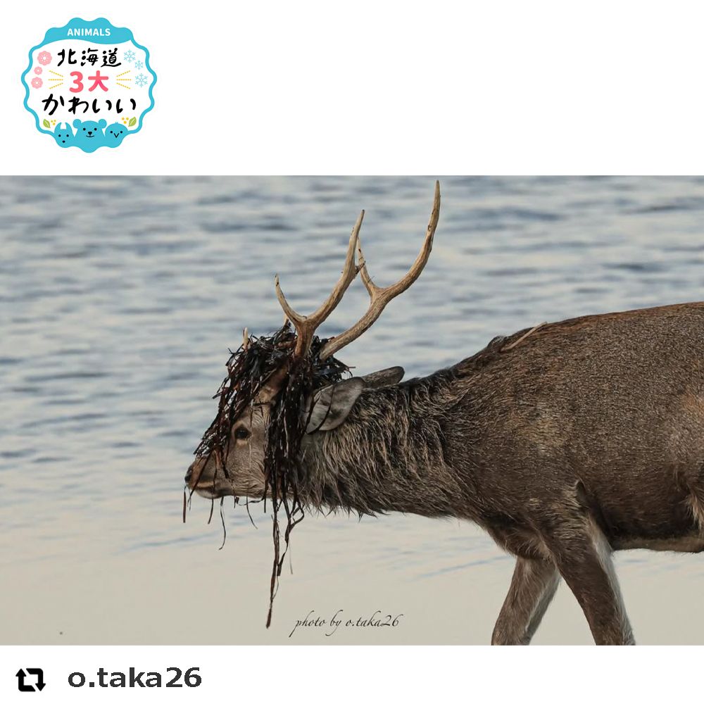 2枚目のお写真は、戦いに勝ったエゾシカ、なのだそうですが、アタマに海藻のようなものをかぶってしまったようで、何ともいえない〝哀愁〟が漂ってしまっています。(笑)