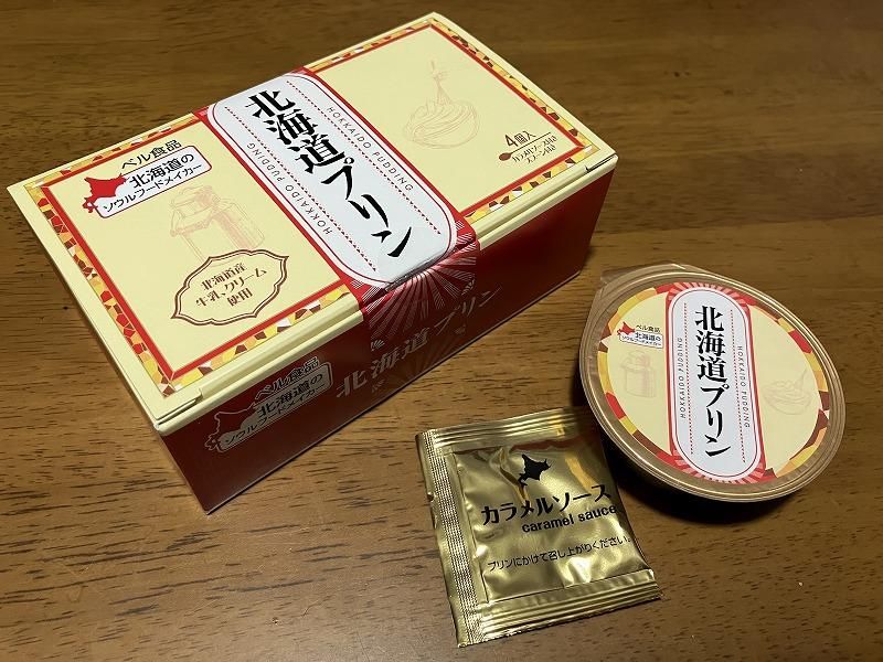 2022年に発売した「北海道プリン」。1箱に4個入りで、プリンはそれぞれカップに入っており、カラメルソースとスプーンが付属しています。