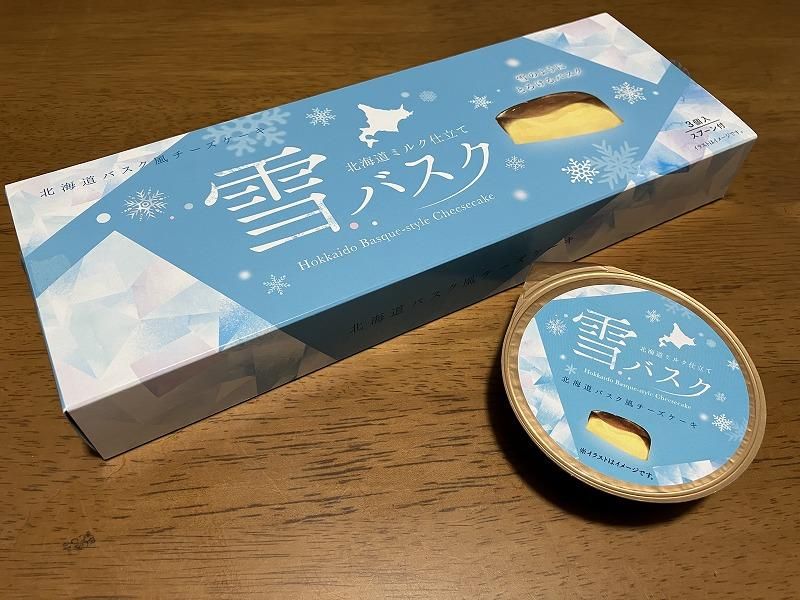 2025年秋冬の新商品「雪バスク」は、「雪のようにやわらかくとろけるなめらかな食感」を目指した、バスク風チーズケーキです。1箱に3個入っています。