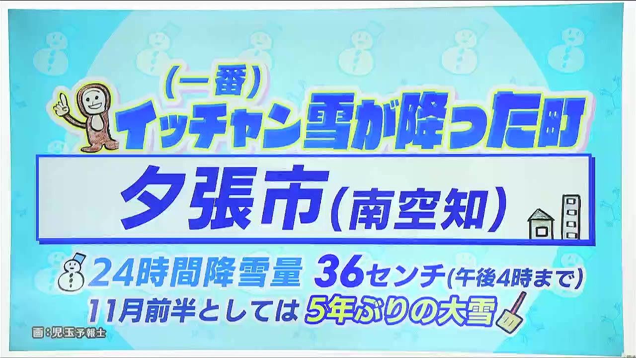 イ~ッチャン雪が降った町です。きょう11日(火)午後4時までの24時間に36センチの雪が降りました。夕張では11月前半としては5年ぶりの大雪になりました。