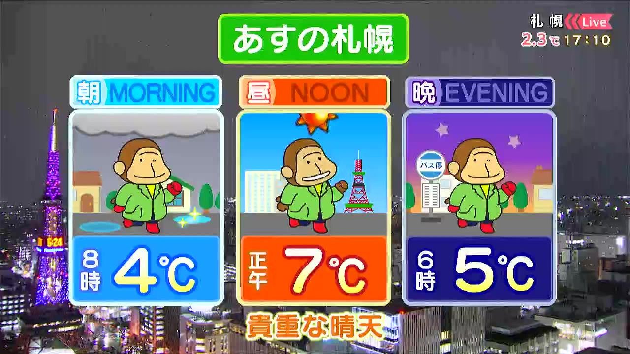 あす12日(水)の札幌です!朝昼晩の天気をもんすけでお伝えします!