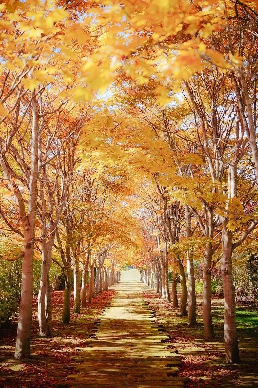 太陽の煌めく光に木々が照らされ、秋のコントラストが本当に美しく、心が奪われた場所でした。