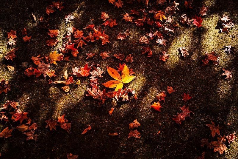 地面に映る木々の影は風に揺られ、キラキラと落ち葉を光らせます。