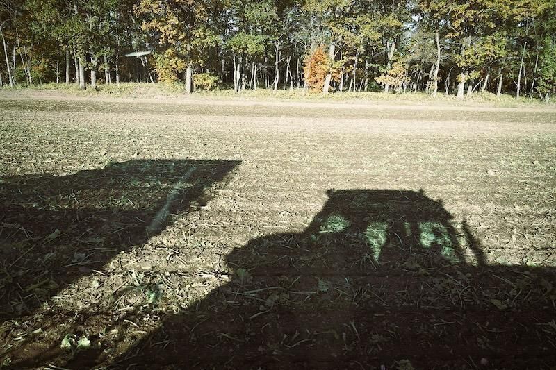 トラクターに斜陽が差し、畑に影が落ち、広い広い畑を進んでいきます。