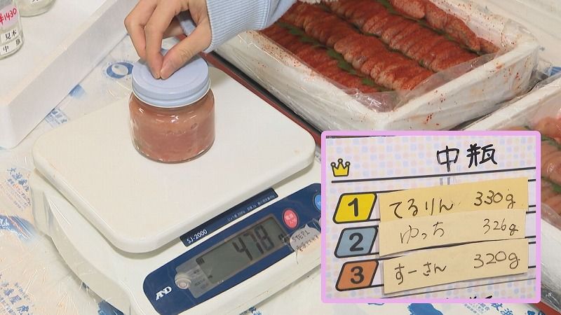 松尾アナ:現在の1位が『てるりん』さん、330g」