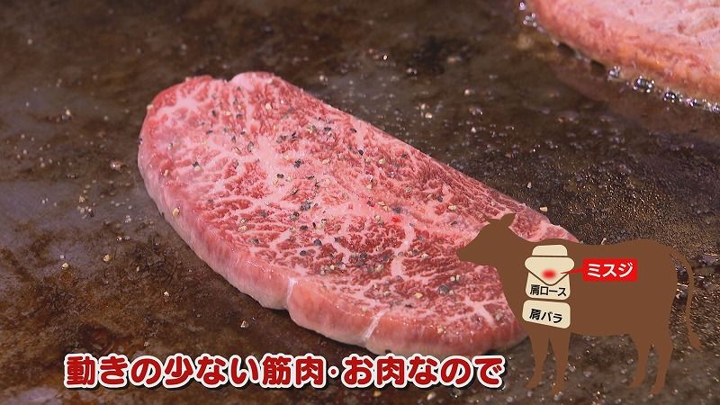 川上さん:「肩甲骨のあたりです。動きの少ない筋肉なので、非常に柔らかく、さしの入った味わい深いお肉に仕上がっております」