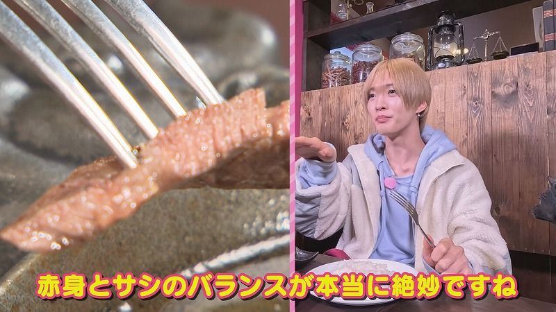 新くん:「いただきます。ん~!!おいしい!赤身とサシのバランスが絶妙です。口の中、ドバーッてうまみが広がりました」