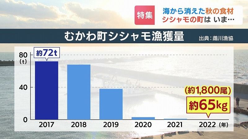 むかわ町の漁獲量は、2017年の72トンから激減。
