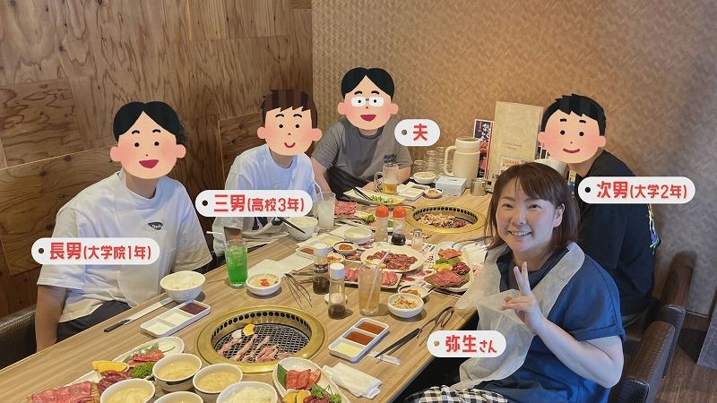 大学院生・大学生・高校生3人の息子と夫の5人家族です。