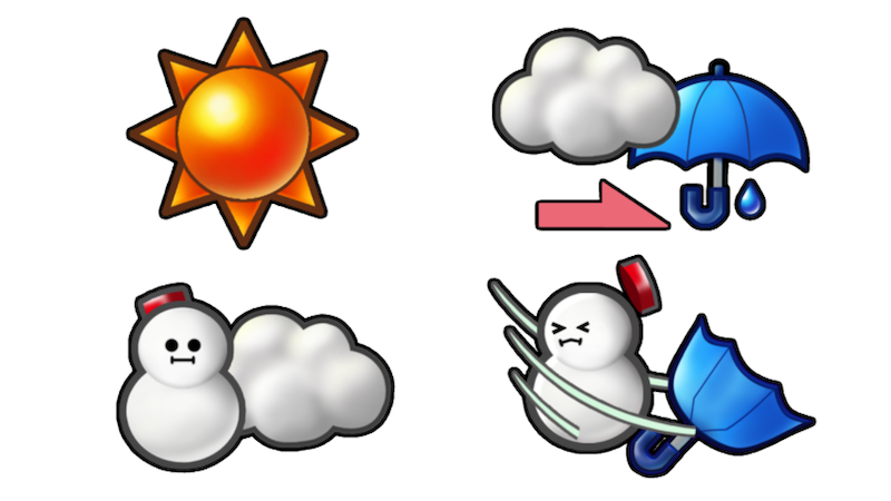 HBCでは北海道ならではの多彩な天気を表現するために、たくさんの天気マークがあります。