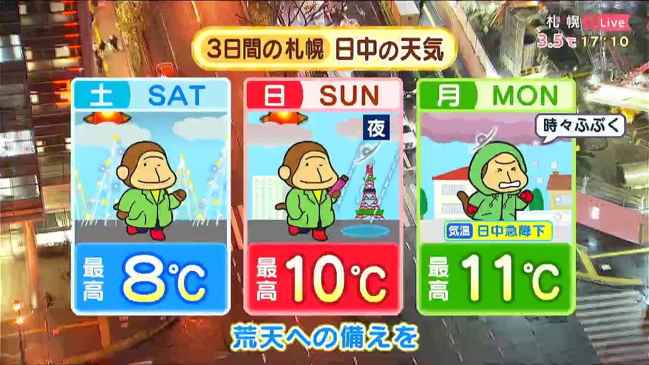 3日間の札幌です!土日月の天気をもんすけでお伝えします!