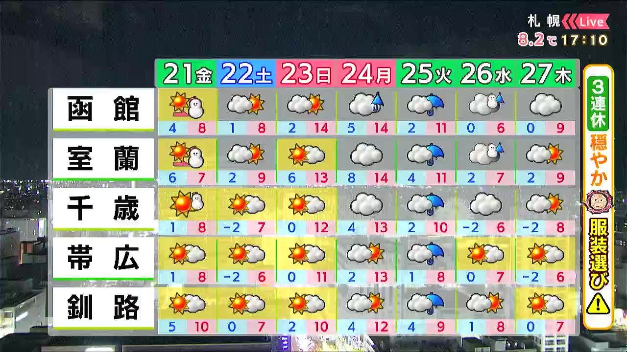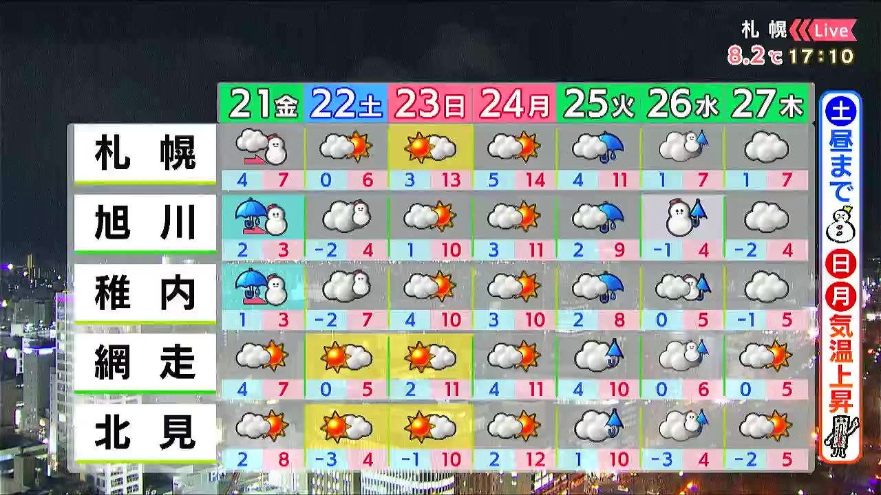あす21日(金)の札幌です!朝昼晩の天気をもんすけでお伝えします!