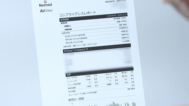「5年前は、1時間あたりの無呼吸の回数は22回。今回9月9日から11月3日までの結果としては、無呼吸の回数は、1時間あたり0.5回に落ち着いてます」