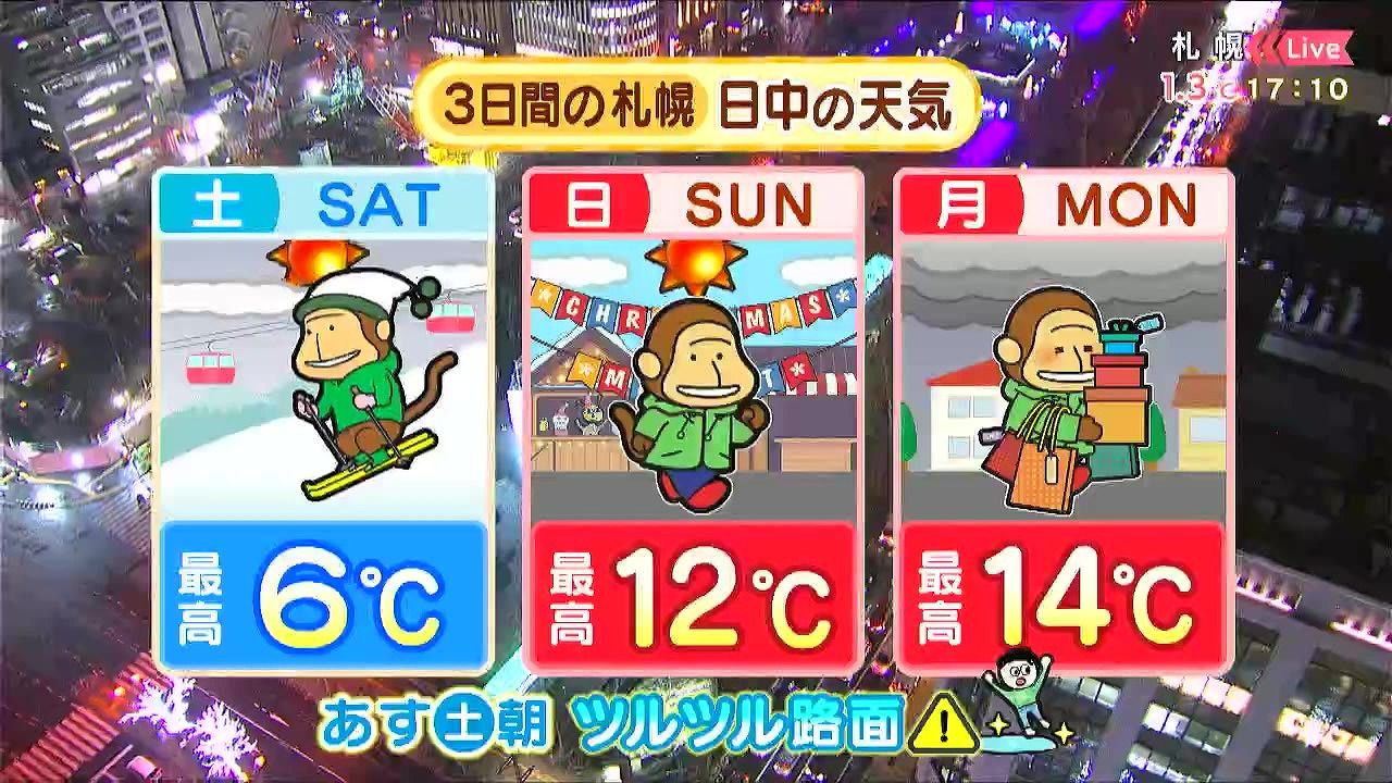 3日間の札幌です! 土日月の天気をもんすけでお伝えします!