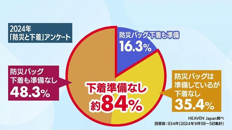 しかし、3年の啓発のあとに行ったアンケートでは、依然として8割以上の人が防災下着を備えていないことがわかりました。