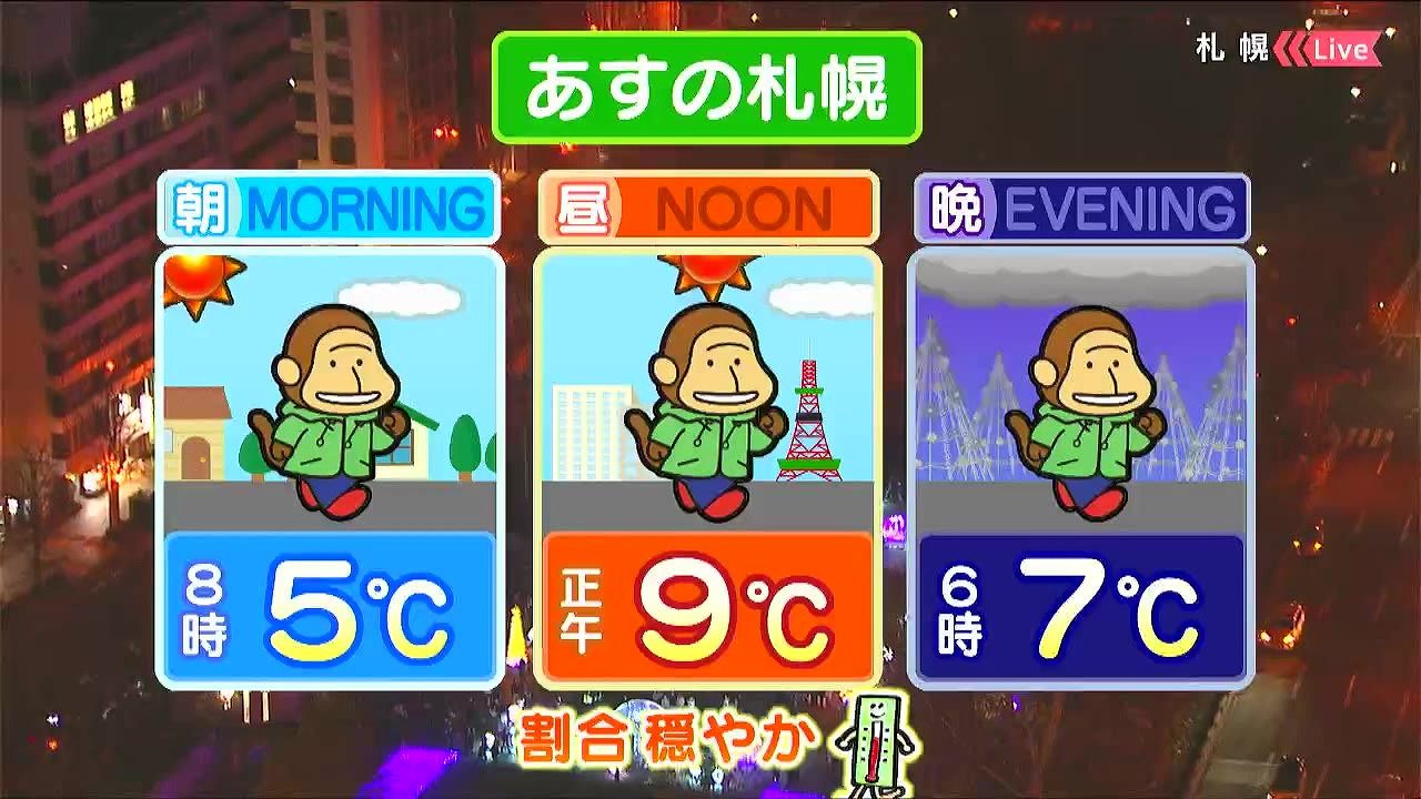 あす25日(火)の札幌です!朝昼晩の天気をもんすけでお伝えします!