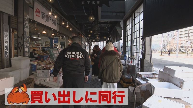 店主の相澤さんは、この二条市場内で仕入れをしているそうで、カニの仕入れについて行かせてもらいました。