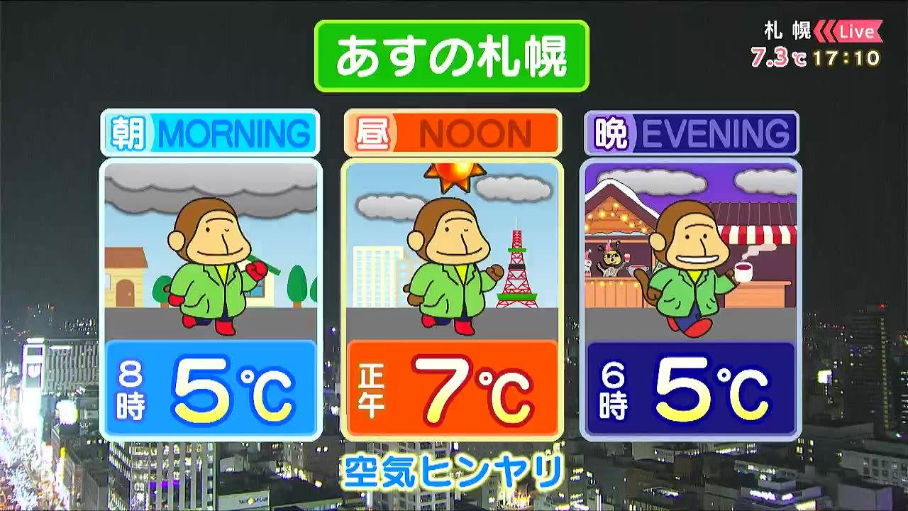 あす26日(水)の札幌です!朝昼晩の天気をもんすけでお伝えします!